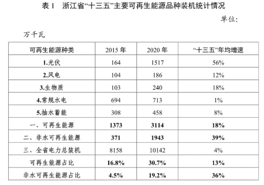 "十三五"以來,我省高度重視可再生能源發(fā)展,并取得顯著成績。截至 2020 年底,全省可再生能源裝機容量達(dá)到 3114 萬千瓦,其中光伏1517萬千瓦(分布式 1070 萬千瓦),常規(guī)水電 713 萬千瓦,抽水蓄能 458萬千瓦,生物質(zhì)發(fā)電 240萬千瓦(垃圾發(fā)電 210 萬千瓦),風(fēng)電 186 萬千瓦(海上風(fēng)電 45 萬千瓦),可再生能源裝機占比達(dá)到 30.7%。