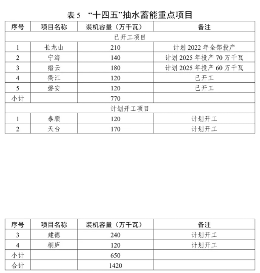 有序發(fā)展抽水蓄能電站。積極推進長龍山、寧海、縉云、衢江、磐安等抽水蓄能開工項目的建設(shè),穩(wěn)妥開展泰順、天臺等抽水蓄能電站項目前期工作,適時啟動建德、桐廬站點的前期工作。結(jié)合現(xiàn)有站點,合理規(guī)劃布局,積極推動新一輪抽水蓄能電站選點工作。加強抽水蓄能電站建設(shè)管理體制、電價機制等研究。"十四五"期間,全省抽水蓄能電站力爭新增裝機容量 340 萬千瓦,累計裝機容量達(dá)到798 萬千瓦。
