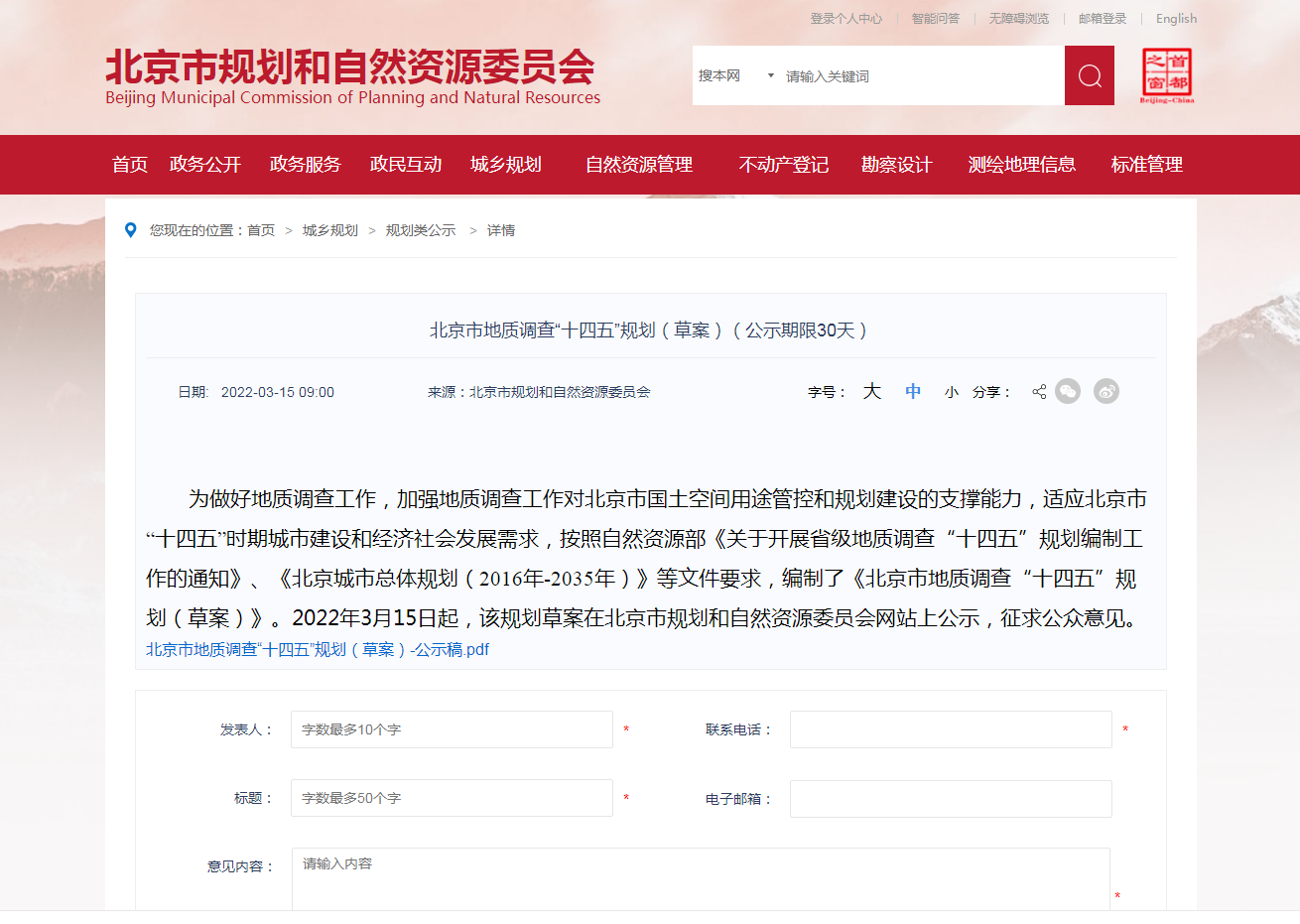 地大熱能地?zé)?多能互補(bǔ)網(wǎng)訊:《北京市地質(zhì)調(diào)查“十四五”規(guī)劃(2021—2025年)(草案)》(以下簡(jiǎn)稱《草案》)3月15日起在市規(guī)劃自然資源委網(wǎng)站公示,聽取公眾意見,公示期30天?!?a href="http://www.0852r.com/t/規(guī)劃.html" >規(guī)劃》提出,北京市將率先對(duì)首都功能核心區(qū)地?zé)崮?/a>等開展綜合地質(zhì)調(diào)查評(píng)價(jià),提供地質(zhì)安全保障。社會(huì)公眾對(duì)該《規(guī)劃》如有意見建議,可在4月14日前登錄北京市規(guī)劃自然資源委網(wǎng)站留言。
