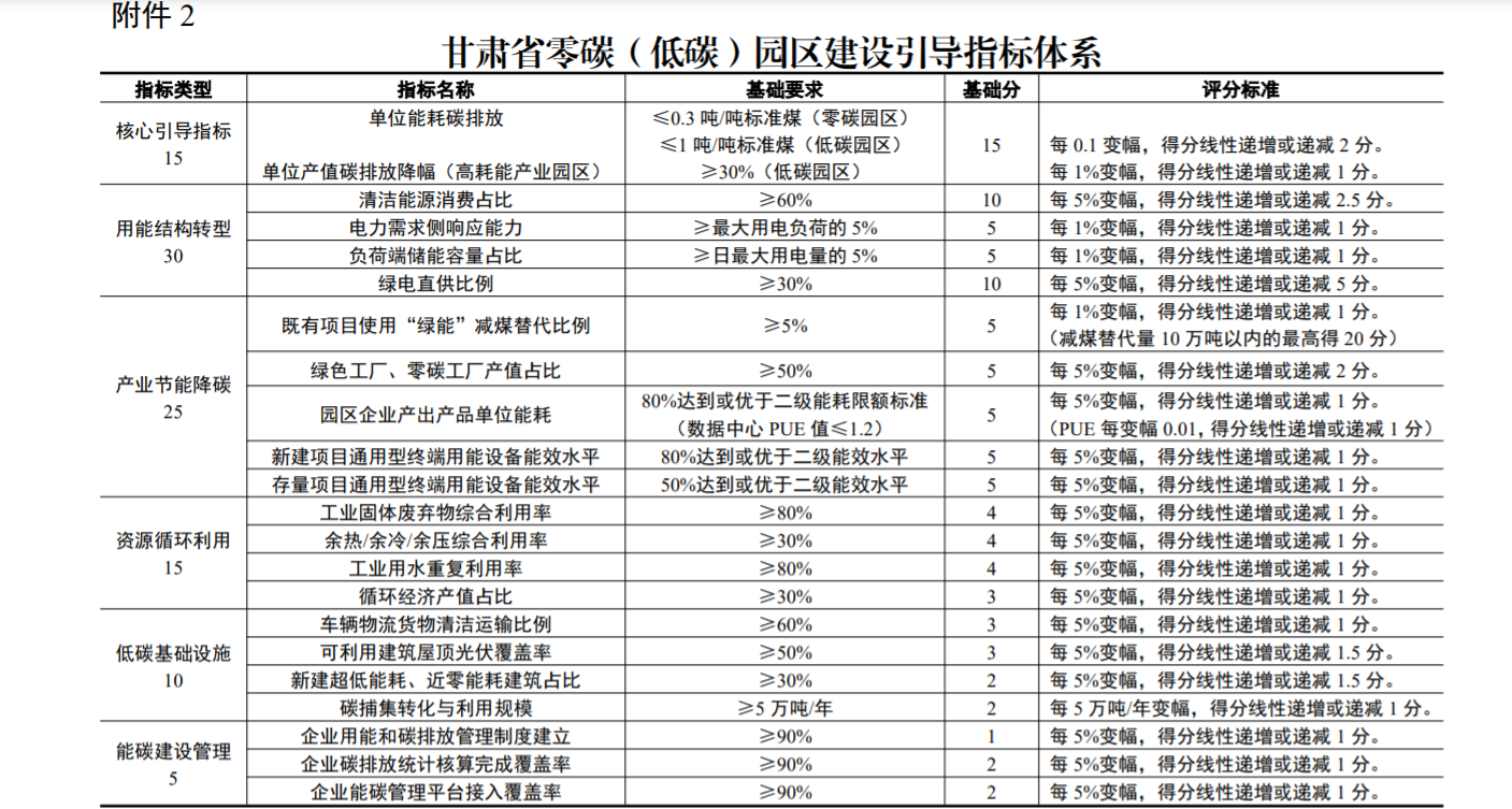 地方政策《甘肅省零碳園區建設方案》:5年建成10個左右零碳(低碳)園區