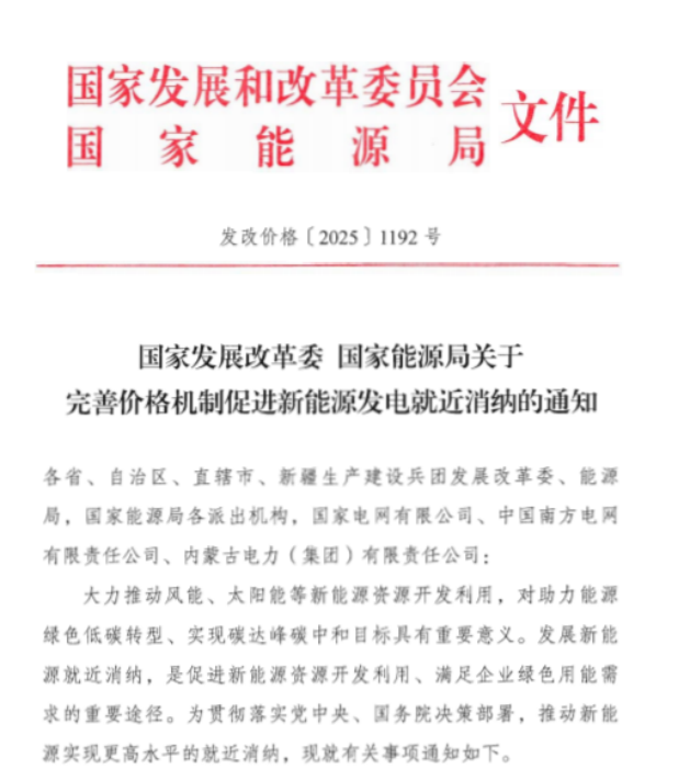 關(guān)于公開征求《關(guān)于貫徹發(fā)改價(jià)格〔2025〕1192號文件進(jìn)一步明確新能源就近消納價(jià)格政策有關(guān)事項(xiàng)的通知(征求意見函)》意見建議的公告
