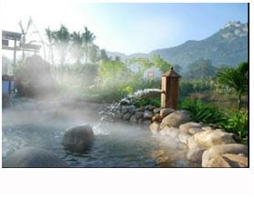 河南省欒川九龍山溫泉風(fēng)景 九龍山溫泉泉水恒溫69.5℃,時流量56噸,水中富含鉀、鎂、鈣、鍶、鋰等27種礦物質(zhì),微含惰性氣體氡和放射性元素鐳,對風(fēng)濕、類風(fēng)濕、心腦血管病后遺癥及婦科、皮膚科常見病的浴療效果顯著,被譽(yù)為中原第一泉。