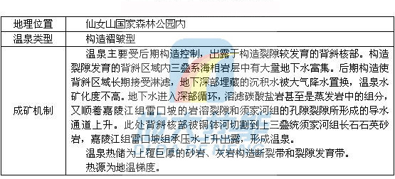 仙女山溫泉地處達州市仙女山腳的銅缽河畔、仙女山國家森林公園,距平灘場鎮1公里。據勘測,該溫泉水質優良,水溫適宜,流量大并且穩定,富含 多種對人體有益的微量元素和礦物質。其中硒和鍶的含量超過國家級規定的標準,對人體具有較好的保健功能。經預測,該溫泉可達國家級溫泉標準,開發的前景廣闊,開發價值高。規劃溫泉水引至對巖竹海中進行開發,新建接待服務設施,開展游泳、沖浪、醫療保健休閑度假等活動項目。擴建平灘經溫泉到馬家的公路,新建景區游道,完善電力設施、通訊設施和提高電視收視效果,達到日接待能力上千人次的規模。